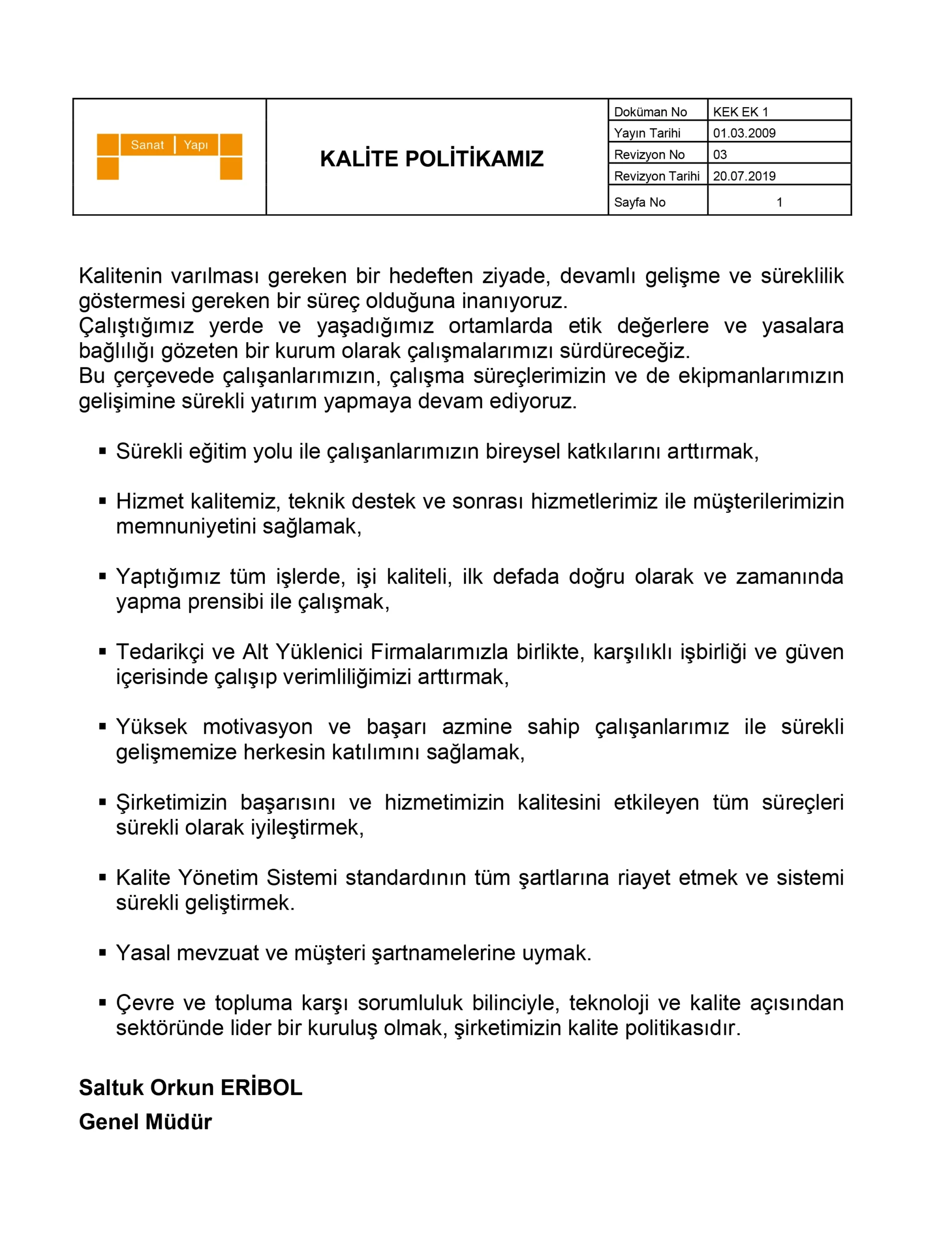 SANAT YAPI İNŞAAT A.Ş. SELECTION POLICY